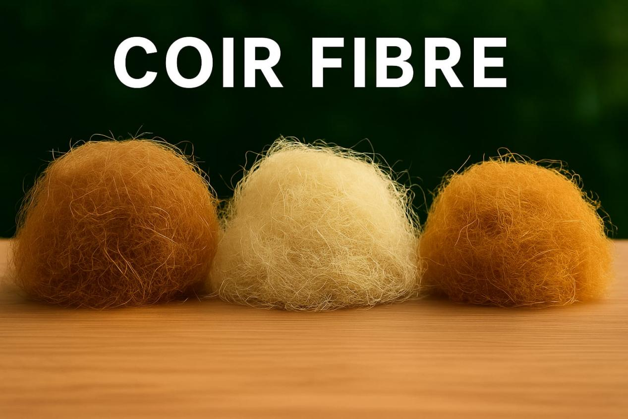 • White Coir Fiber – Softer, finer, used in upholstery, mattresses, and export products.