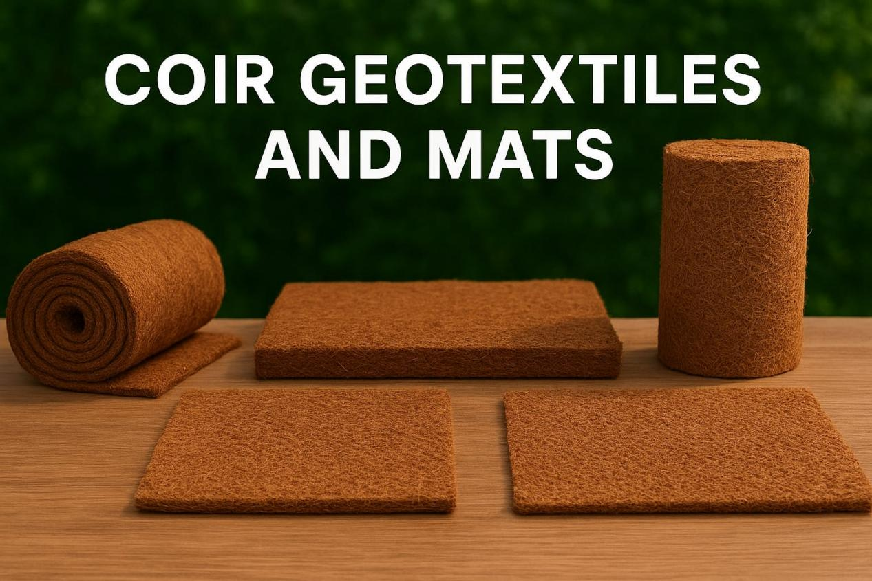 Coir Geotextiles / Mats Prevent soil erosion, widely used in road construction, slope stabilization, and landscaping projects.Coir Mats & Rugs – 100% natural, biodegradable, and long-lasting. Roll Specifications Parameter Specification Thickness 400 – 900 GSM Roll Width 1 – 4 m Roll Length 30 – 50 m Applications >Erosion control, landscaping, road works